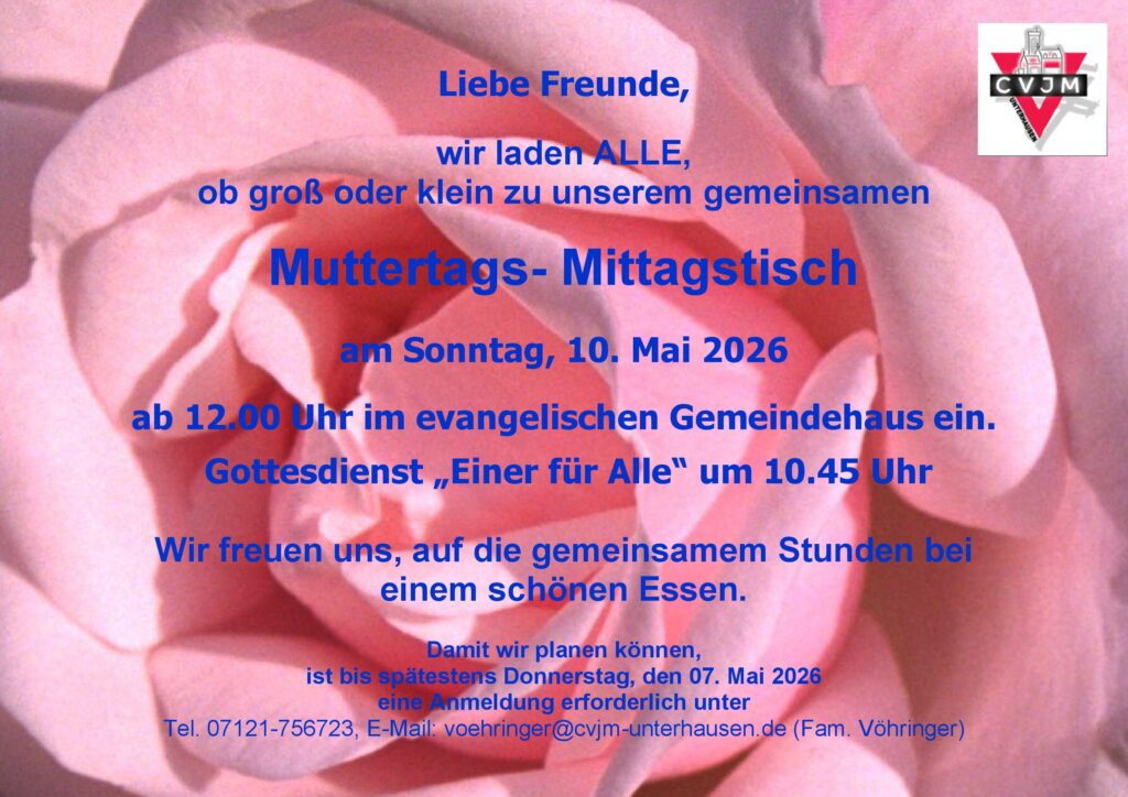 am Sonntag, 10. Mai 2026 ab 12.00 Uhr im evangelischen Gemeindehaus ein.