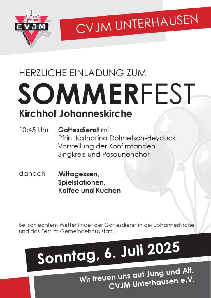 Bei schlechtem Wetter findet der Gottesdienst in der Johanneskirche und das Fest im Gemeindehaus statt.