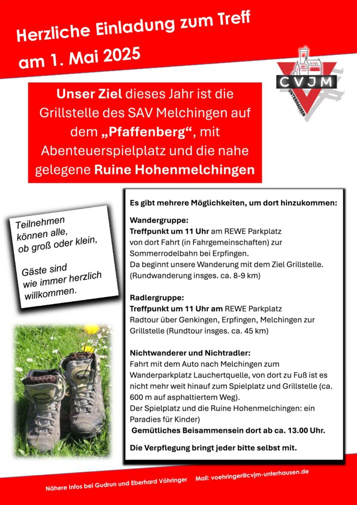 Herzliche Einladung zum CVJM Maitreff am Donnerstag, 1. Mai 2025 auf dem Pfaffenberg