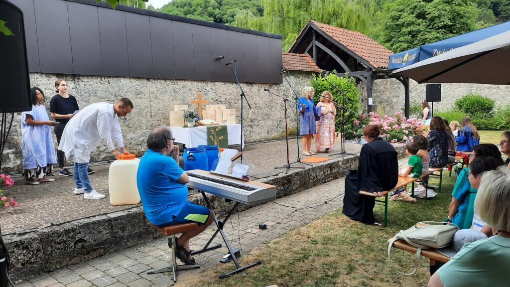 Ein Anspiel zum Thema Wasser zu Wein brachte den Predigttext näher.