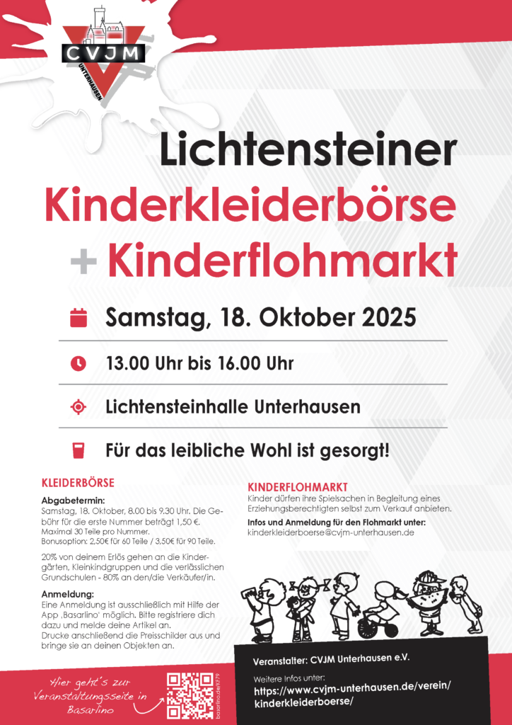 Nachdem sich das langjährige Organisationsteam nach fast 30 Jahren ehrenamtlicher Organisation in den „Ruhestand“ verabschiedet hat, veranstaltet der CVJM Unterhausen ab 2025 die Kinderkleiderbörse mit Flohmarkt.